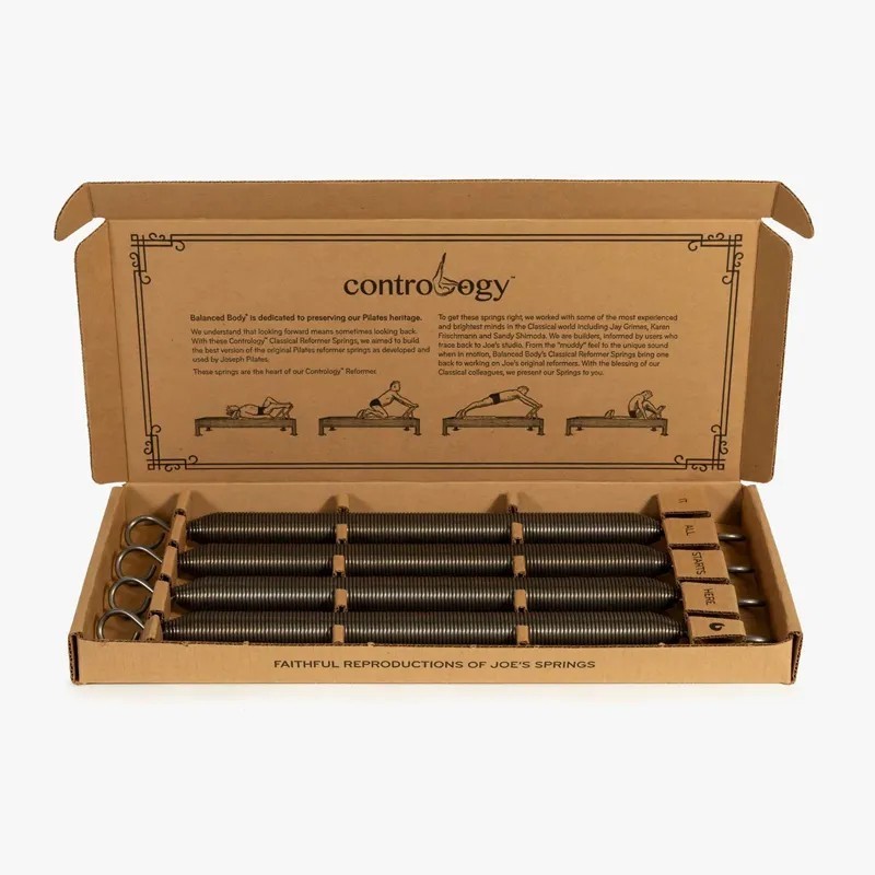 Découvrez les ressorts conçus pour le Reformer Contrology® de Balanced Body®. Chaque ressort est équipé de deux crochets pour être fixé solidement au reformer. Les Contrology® Springs reproduisent fidèlement les sensations des reformers originaux de Joseph Pilates.
